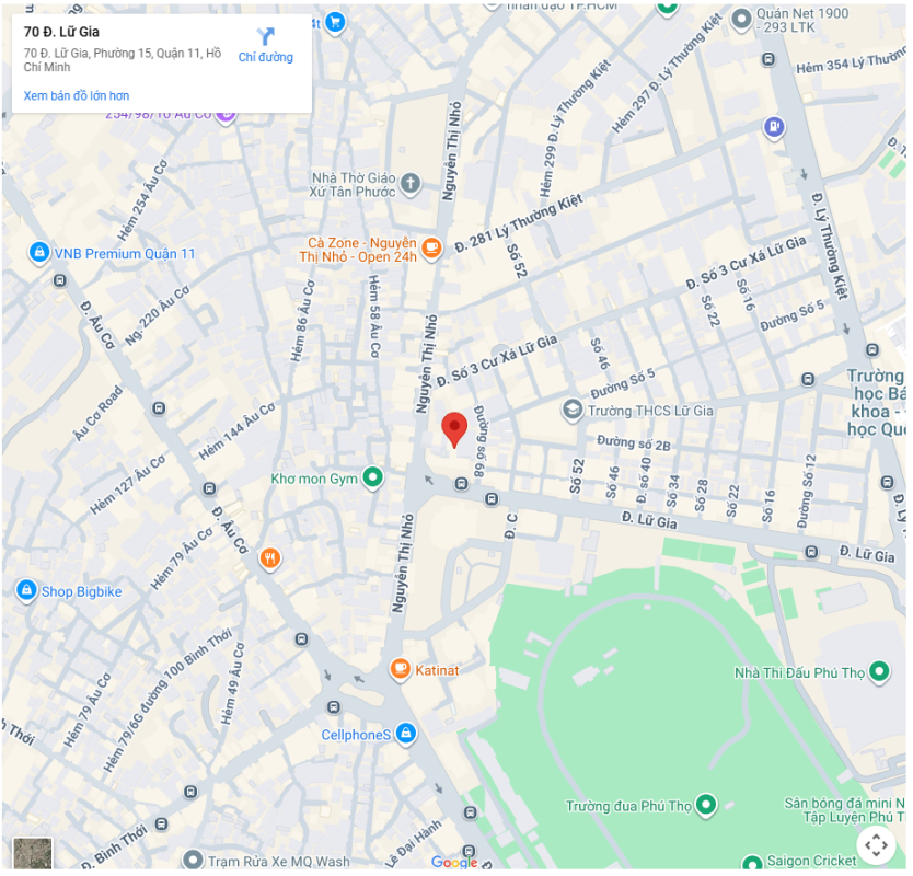 Địa chỉ: 70 Lữ Gia, Phường 15, Quận 11, Tp.HCM